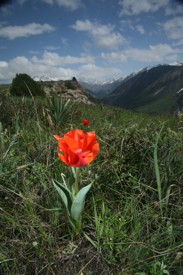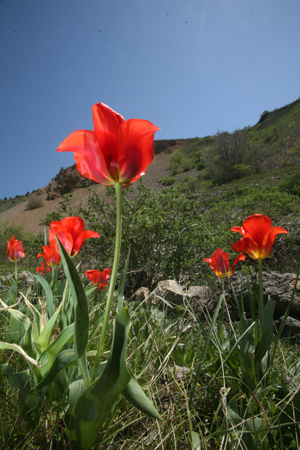 Tulipa greigi near Zhabagly canyon (by Roman Jashenko)