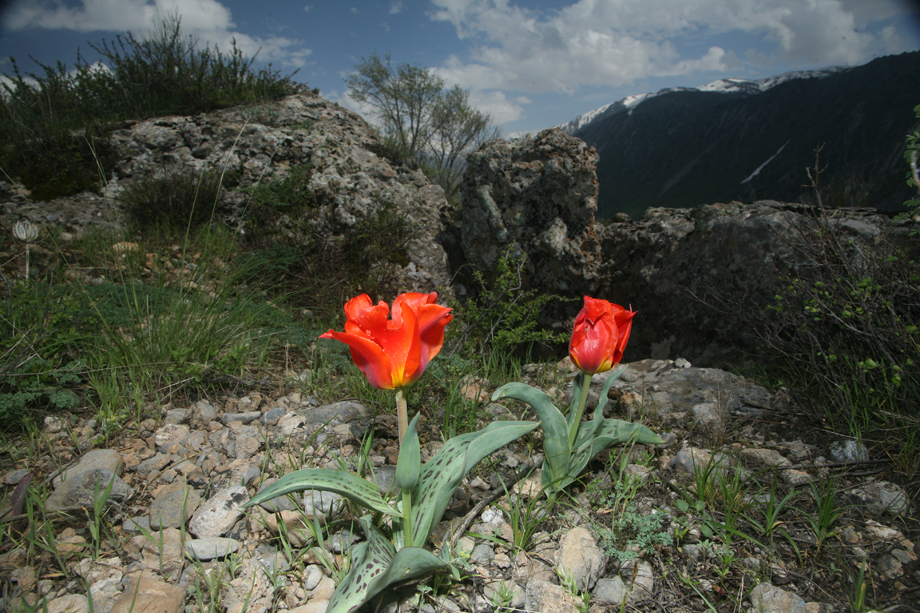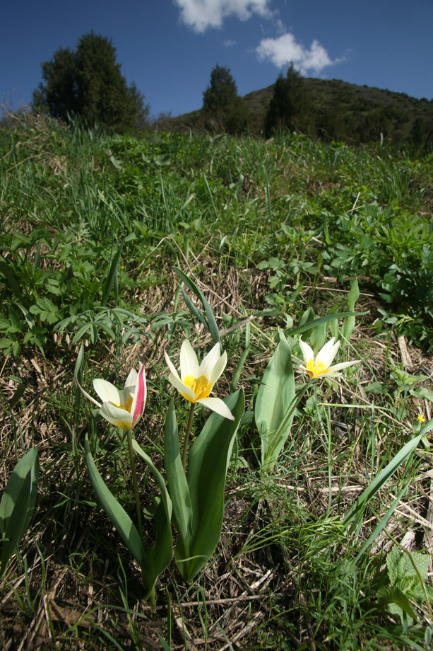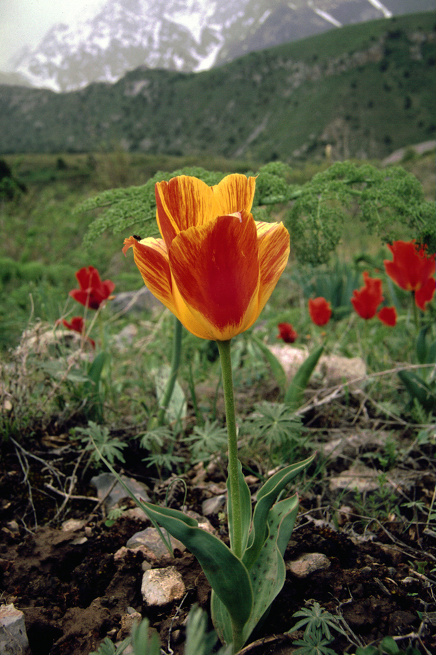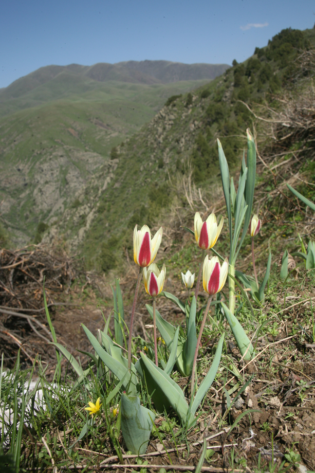 Tulipa kaufmanniana near edge of valley (by Roman Jashenko)
