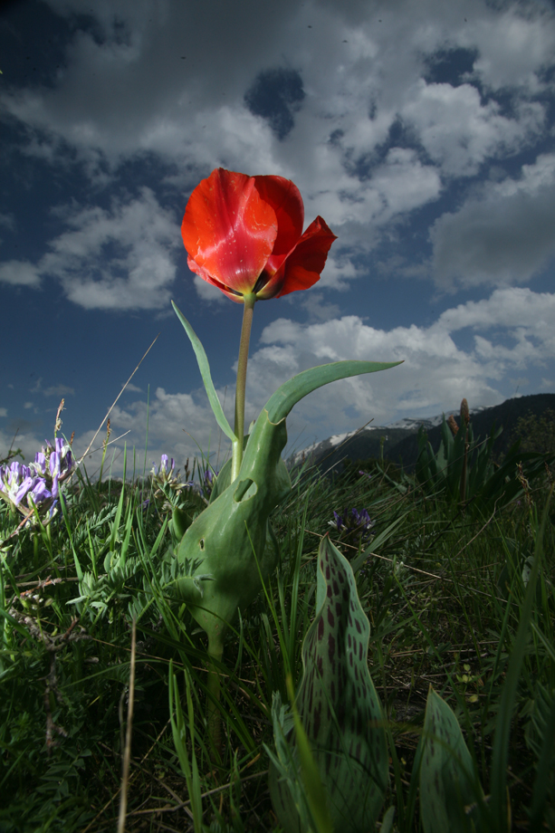 Tulipa greigi on the sky (by Roman Jashenko)