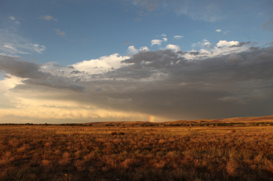 Sunset with rainbow in Alakol (by Roman Jashenko)